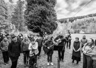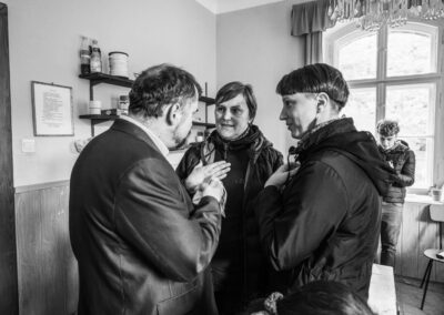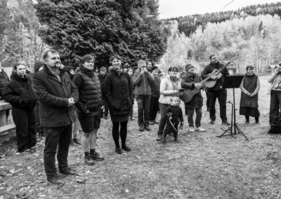 Závěrečná akce spojila dopolední práci s odpolední slavností. Připravovalo se dřevo, uklízela a zdobila se fara, vznikla výstava fotografií a chystalo se občerstvení. Odpoledne proběhla mše ve zdejším kostelíku a následné požehnání na faře, vedené děkanem Stanislavem Kotlářem za účasti čtyř kněží. Dorazilo téměř sedmdesát lidí a zájem o přednášku o vizích fary a pěších poutích byl tak velký, že se společenská místnost zcela zaplnila.